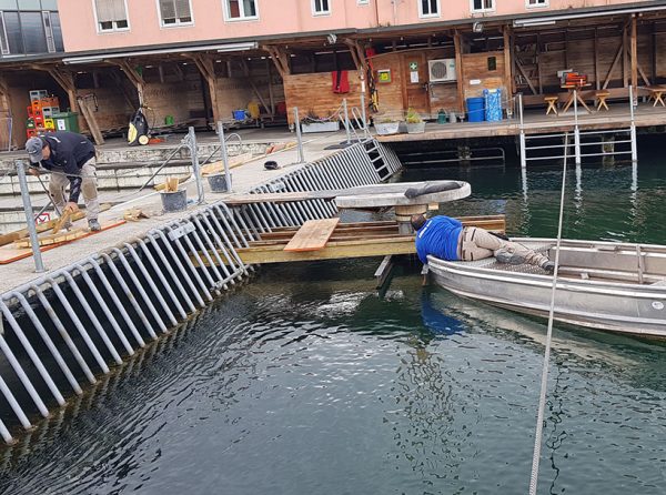 Rhybadi, Schaffhausen Neubau Anbau Stadt Schaffhausen, WSP Ingenieure Schaffhausen, Denkmalpflege Schaffhausen Ausgeführte Arbeiten Ersatz Betonpodest in Sichtbeton